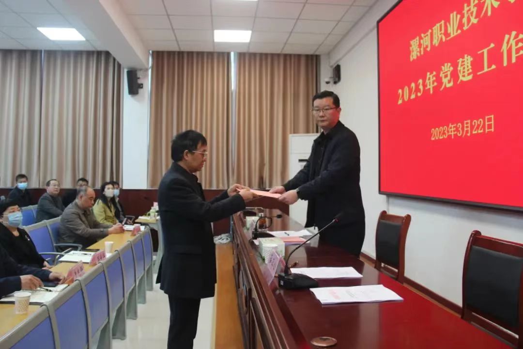 3月22日,OK138太阳集团召开2023年党建工作推进会,深入学习贯彻党的二十大精神和习近平总书记关于党的建设重要论述精神,传达贯彻省、市党建工作会议精神,总结分析2022年度我校党建工作,安排部署新形势下党建工作任务。党委书记易军鹏讲话,副书记薛存心主持会议,党委领导班子成员出席会议,学院各基层党组织书记、副书记、有关部门负责同志及“三专型”基层党务工作者参加会议。