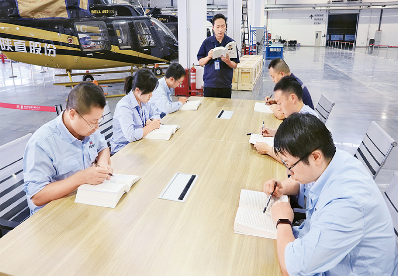 2022年9月9日,陕西直升机股份有限公司第三党支部在公司产业园生产制造区读书角进行《习近平谈治国理政》第四卷专题学习。