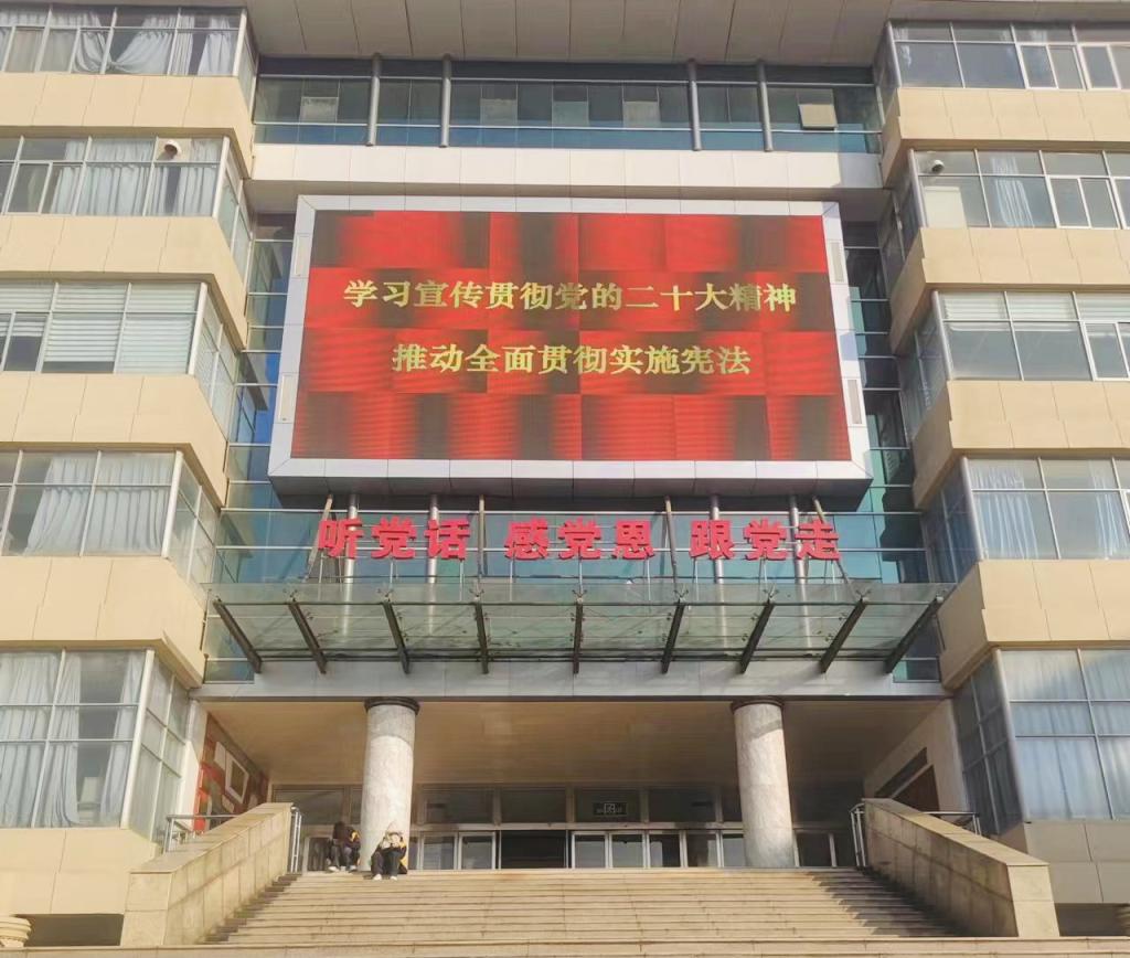 积极营造宪法宣传氛围,在学校led屏幕、官网滚动播放宪法宣传标语、官微推送宪法知识、校内悬挂宣传横幅、摆放宣传版面等方式扩大覆盖面,增强渗透力,让师生深切感受到“宪法”氛围,营造浓厚的法治宣传氛围。