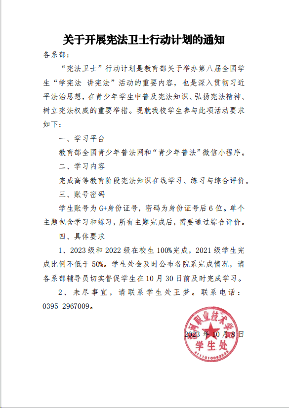 宪法的生命在于实施,宪法的权威也在于实施。OK138太阳集团将深入宣传贯彻落实党的二十大精神,认真学习贯彻习近平法治思想,落实中央关于深入学习宣传和贯彻实施宪法的有关精神,教育引导师生学习宣传宪法,把宪法精神和宪法思维内化于心、外化于行,以实际行动弘扬宪法精神。